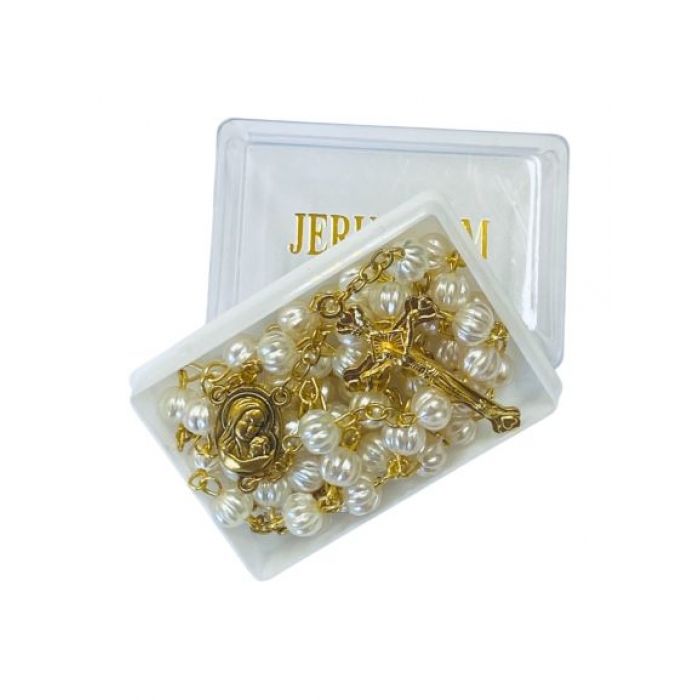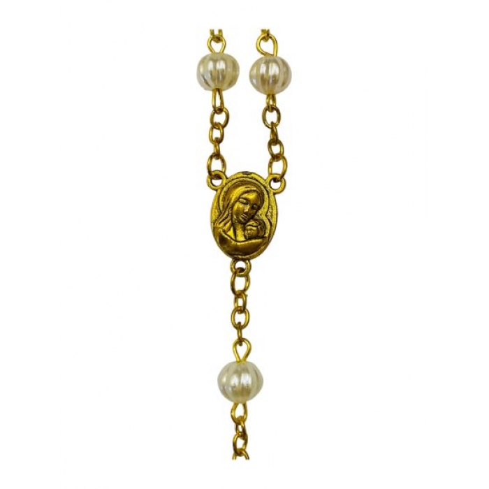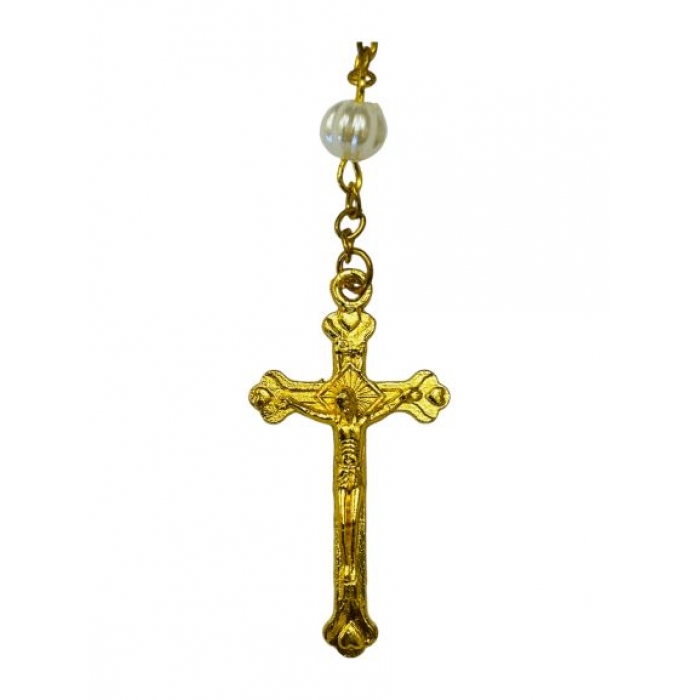 SIZE:54CM ROSARY-WHITE/GOLD